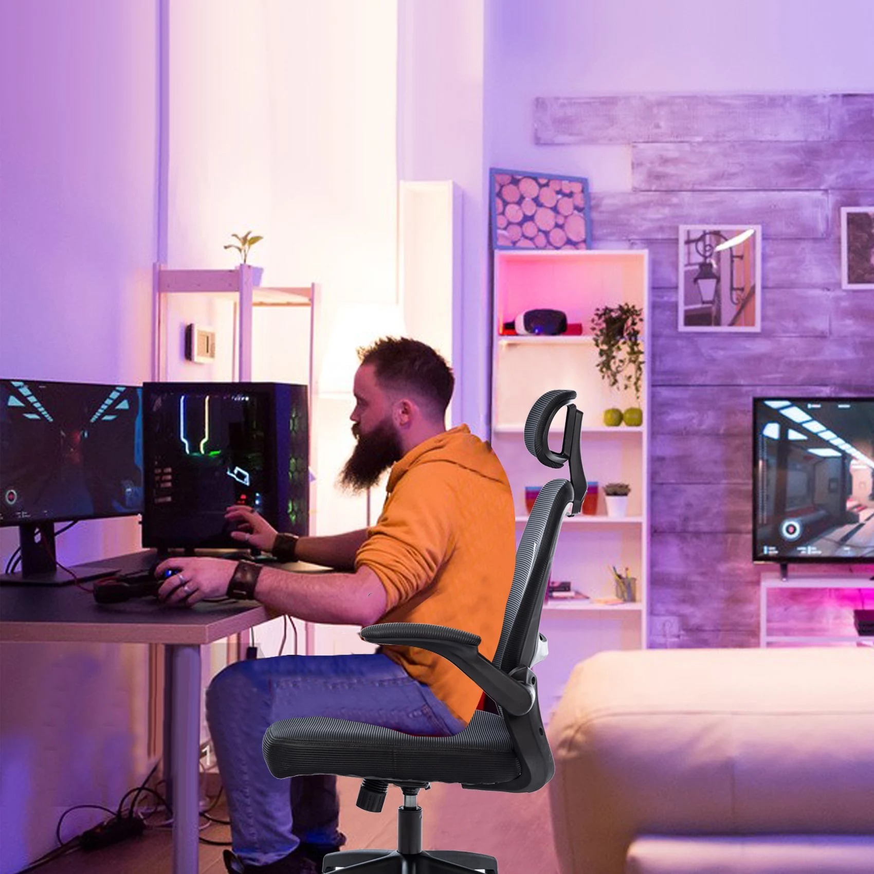 Il primo punti a suo favore è la solidità, garantita dalla seduta in schiuma a memoria di forma che poggia su una base metallica, per una maggiore durevolezza, pensata per supportare anche pesi massimi (la portata è di ben 136 kg). I braccioli possono essere rialzati per garantire la massima flessibilità di utilizzo e posizionamento.