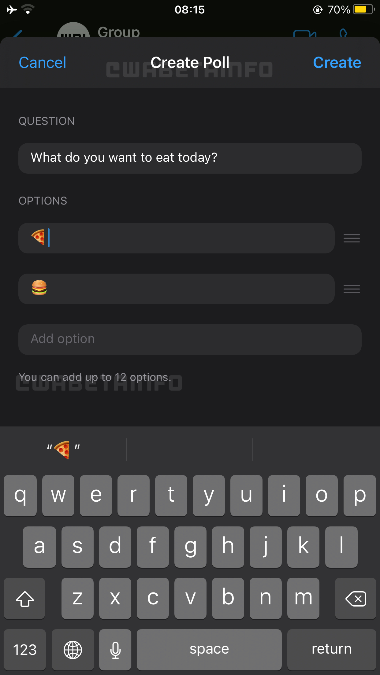 Sempre grazie al puntualissimo portale WaBetaInfo, veniamo a conoscenza che all’interno della nuova versione 22.8.0.72 di WhatsApp Beta per iOS vi sono ulteriori tracce della funzionalità sondaggi. Sebbene prima vi fossero solo dettagli generici, lo sviluppo è adesso arrivato ad uno stadio più avanzato: i due screenshot riportati di seguito vi mostrano l’avanzamento dei lavori in corso e potrete farvi un’idea di come apparirà la schermata per creare un sondaggio e aggiungervi le varie opzioni.