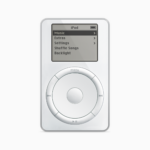 - L’iPod originale, lanciato il 23 ottobre 2001, il primo lettore MP3 a contenere 1.000 brani e 10 ore di autonomia, in un design che fermava l’ago della bilancia a 185 grammi.