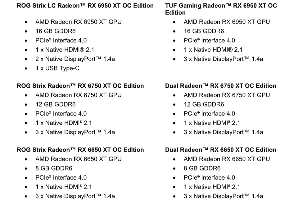 Specifiche di AMD Radeon RX 6950 XT, RX 6750 XT e RX 6650 XT