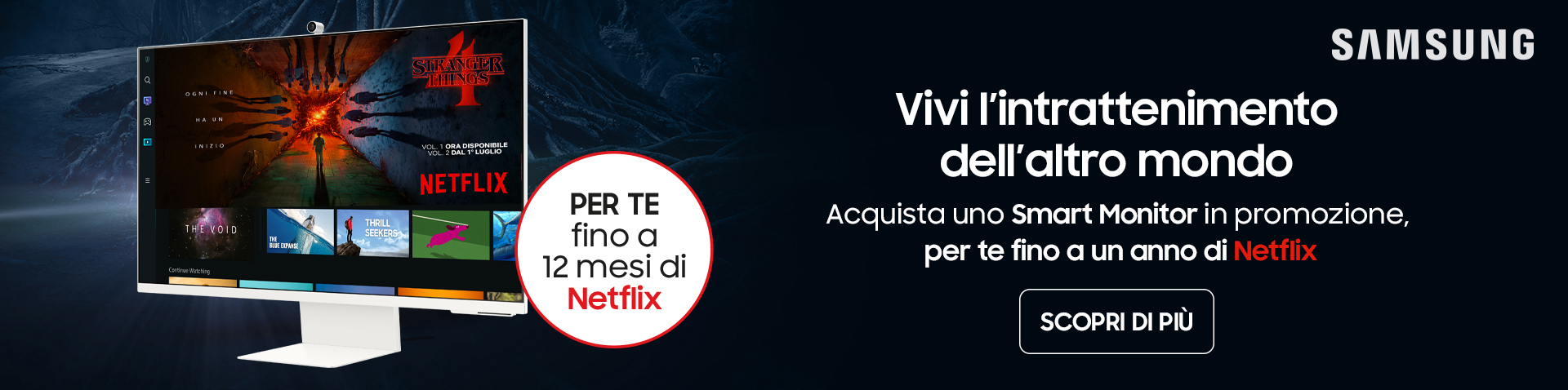 Negli ultimi tempi, Samsung ha portato sul mercato dei prodotti che vanno oltre il concetto tradizionale di monitor e ora — più precisamente nella giornata di ieri, 15 giugno 2022 — ha lanciato una nuova promozione allo scopo di incentivare l’acquisto degli Smart Monitor: gli acquirenti potranno ottenere fino a 12 mesi di Netflix in regalo.