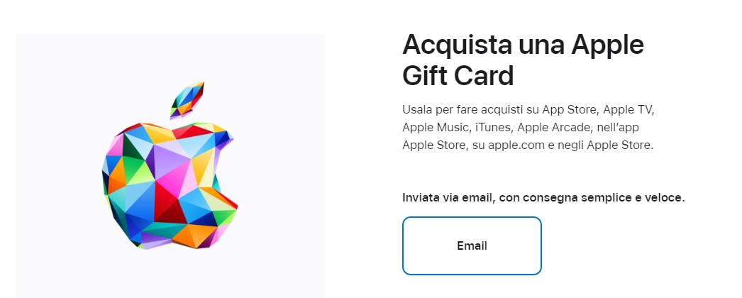 Apple Gift Card è una carta regalo unificata utilizzabile per tutti i prodotti e i servizi dell’azienda e quindi offre la possibilità di effettuare acquisti negli Apple Store sul territorio e online, nell’app Apple Store, su apple.com, sull’App Store e su iTunes, Apple Music, Apple TV, Apple Books e altre piattaforme di proprietà di Apple.
