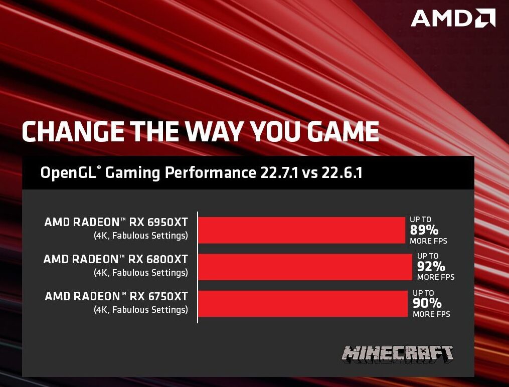 L’aggiornamento 22.7.1 del software AMD include anche ottimizzazioni di OpenGL che permettono di ottenere un aumento dell’85% delle prestazioni in giochi come Minecraft.