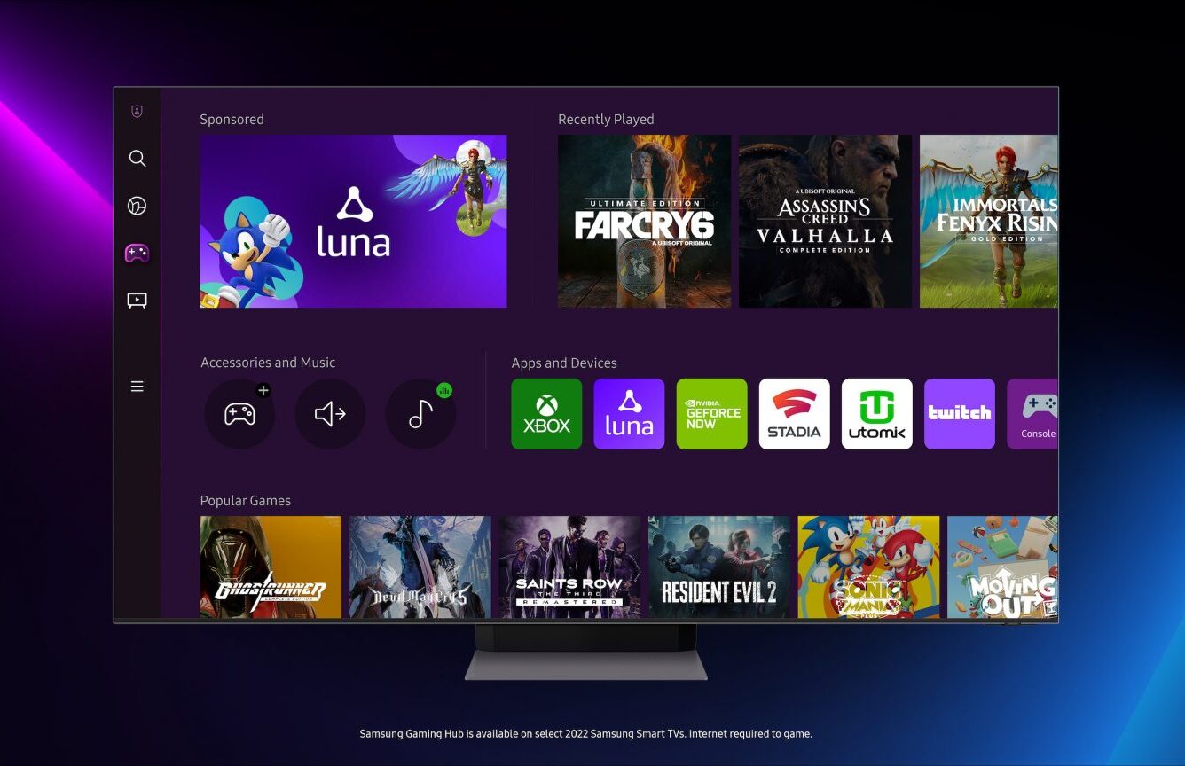 Samsung ha appena annunciato che sulla gamma di monitor e smart TV Samsung 2022 da oggi supporta anche il servizio di gioco in streaming Amazon Luna che si aggiungerà a Google Stadia, Xbox Cloud Gaming e NVIDIA GeForce Now all’interno di Samsung Gaming Hub.