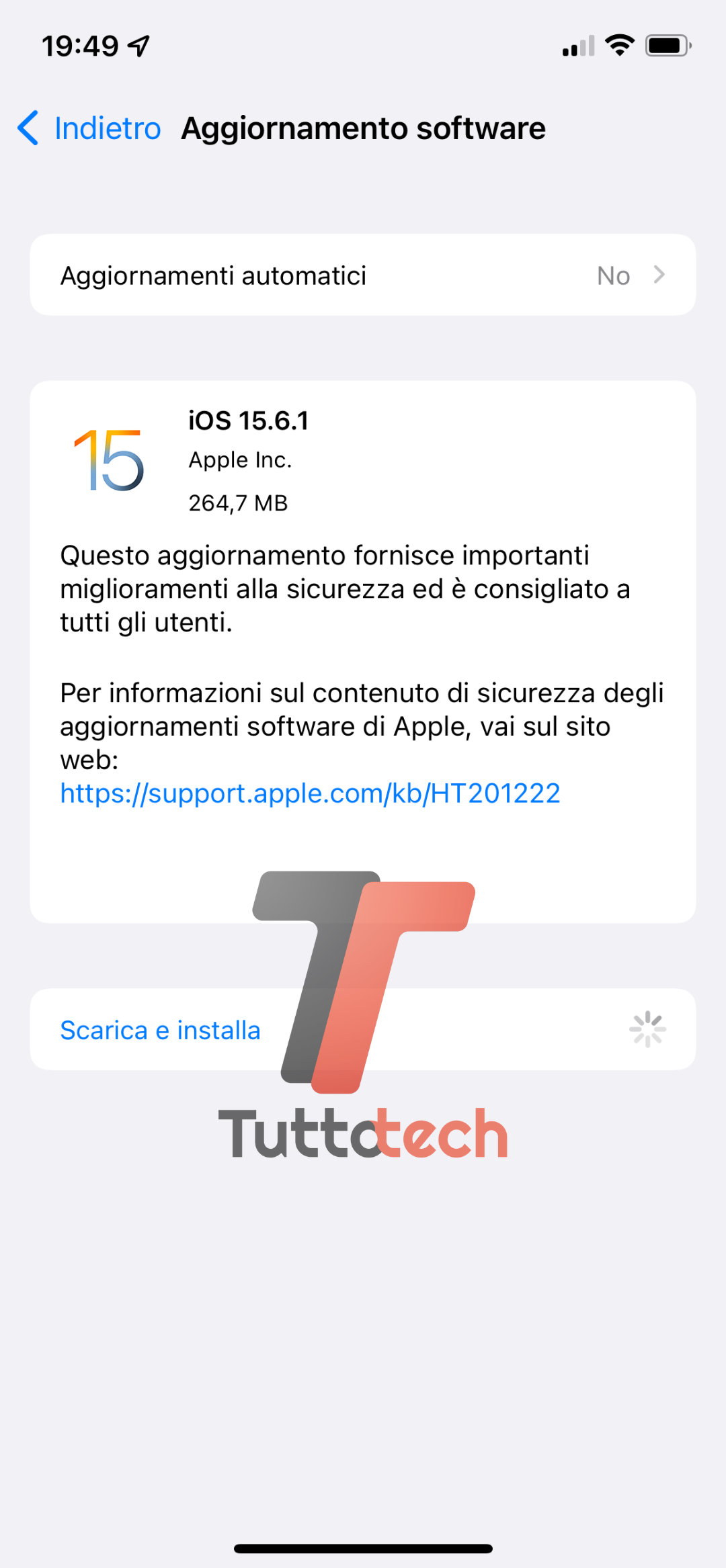 La build in distribuzione è contrassegnata dal codice 19G82, sia per la nuova versione di iOS che per la nuova versione di iPadOS e va a sostituire la precedente 19G71, rilasciata come iOS/iPadOS 15.6 appena quattro settimane fa. Come è possibile apprezzare dalla schermata successiva, il nuovo aggiornamento per gli iPhone (dal 6s in poi) e iPad compatibili si concentra sulla risoluzione di bug; il changelog fornito, infatti, recita che “Questo aggiornamento fornisce importanti miglioramenti alla sicurezza ed è consigliato a tutti gli utenti”. In realtà, visitando la pagina del supporto Apple indicata dalla pagina dell’aggiornamento, veniamo a conoscenza del fatto che iOS 15.6.1 va a risolvere due vulnerabilità che sono state già sfruttate da malintenzionati: la prima vulnerabilità potrebbe aver consentito ad un’applicazione di eseguire codice arbitrario con privilegi di kernel; la seconda vulnerabilità riguardava WebKit, il motore che alimenta Safari e tutti i browser di terze parti presenti in iOS. Va sottolineato che questo, potrebbe essere l’ultimo aggiornamento software (o uno degli ultimi) per i vari iPhone 6s, iPhone 6s Plus, iPhone 7 e iPhone 7 Plus, smartphone che non riceveranno iOS 16 perché non rientrano nella lista dei dispositivi che verranno supportati.