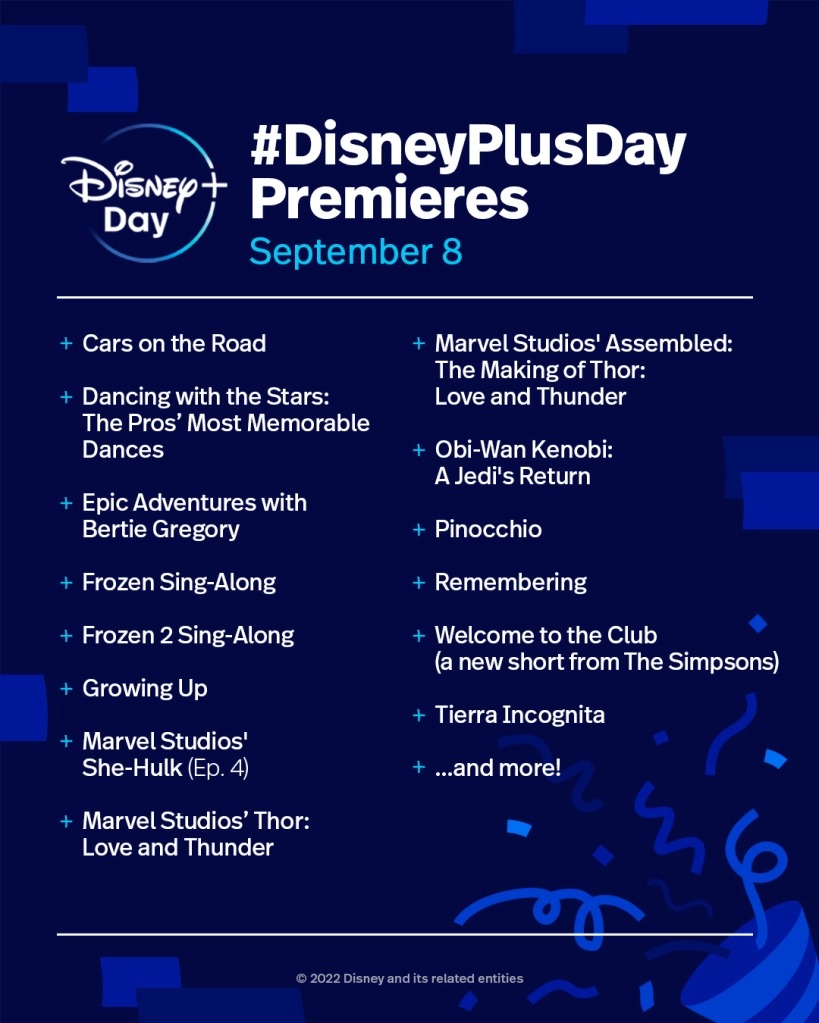 Tra le novità in arrivo in occasione del Disney+ Day troveremo anche il documentario Obi-Wan Kenobi: A Jedi’s Return che racconterà la produzione della serie TV disponibile sul servizio di streaming di casa Disney dallo scorso mese di maggio. L’immagine qui di sotto riassume l’elenco completo delle novità in programma per gli utenti Disney+ nel corso del prossimo 8 di settembre: