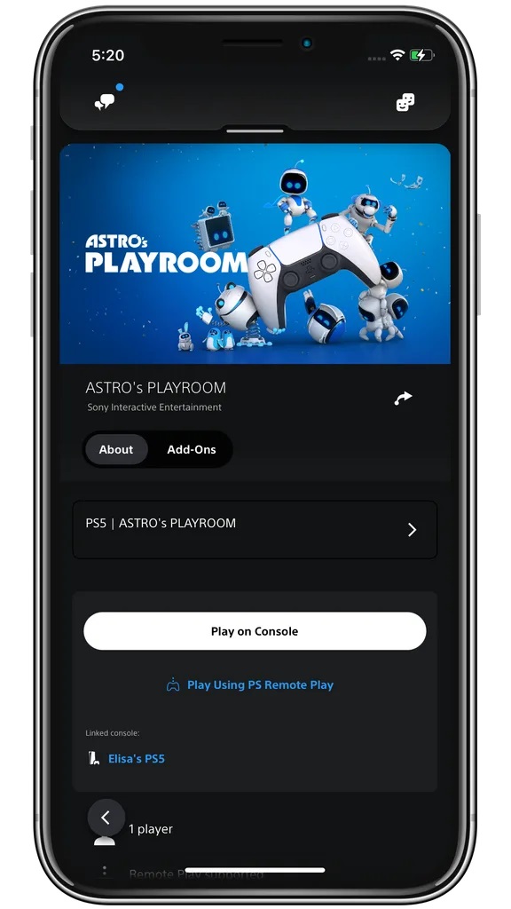 Per utilizzare questa funzionalità PS App e PS Remote Play devono essere installate sul proprio smartphone o tablet, dopodiché è sufficiente verificare che PS App sia collegata alla PS5 e la console sia in Modalità di riposo, quindi selezionare l’icona “Gioca utilizzando PS Remote Play” in un hub di gioco di PS App. L’app PS Remote Play avvierà automaticamente il gioco.