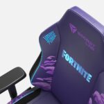 Lo sfondo è realizzato sulla base di una palette viola scuro, scelta che richiama la Tempesta di Fortnite, e non poteva mancare il logo di Fortnite nella parte superiore dello schienale. La Secretlab Fortnite Collection è completata da tre cuscini lombari, realizzati in Memory Foam Secretlab Fortnite Edition dedicati ad alcuni dei personaggi preferiti dai giocatori: Peely, Leader della Squadra delle Coccole e Lama.