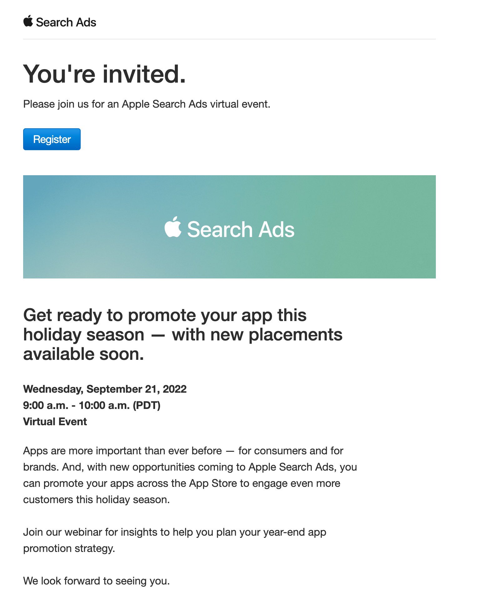 Stando a quanto si apprende dalla comunicazione inviata da Apple agli sviluppatori (condivisa su Twitter da Eric Seufert), l’idea del colosso di Cupertino è quella di convincere gli sviluppatori a puntare su questo sistema di annunci pubblicitari per riuscire a raggiungere nuovi utenti.