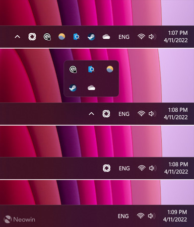 L’utente avrà una terza possibilità, ovvero rimuovere il menu di overflow e disabilitare tutte le icone contenute al suo interno. L’interruttore per abilitare o disabilitare questa possibilità sarà reperibile al percorso “Impostazioni > Personalizzazione > Barra delle applicazioni > Overflow dell’angolo della barra delle applicazioni > Nascondi menu di overflow”.