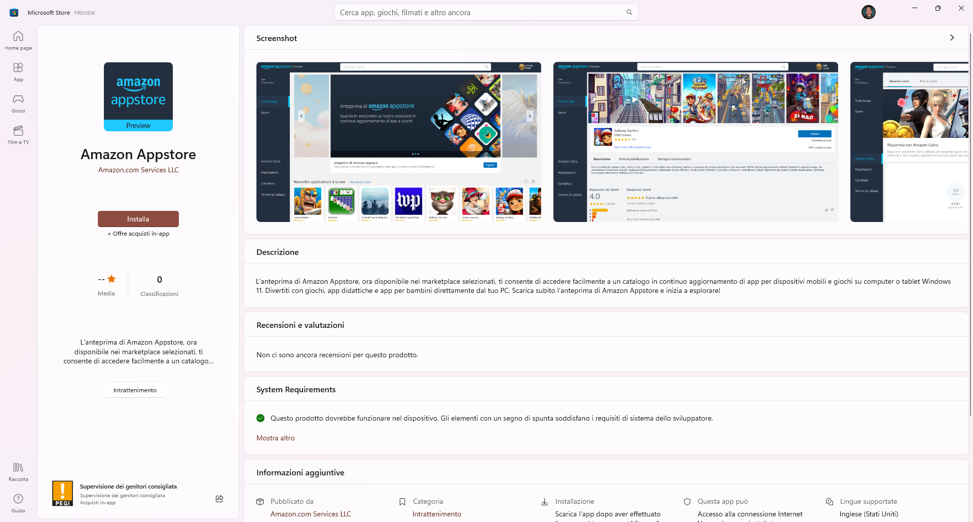 Grazie alla partnership con Amazon, l’anteprima di Amazon Appstore viene estesa ai mercati internazionali: oltre venti mila app e giochi Android potranno essere eseguiti sui dispositivi Windows 11 che soddisfano i requisiti hardware specifici della funzionalità. Per scaricare lo store e potere provare le app Android sul PC, basterà seguire questo link e selezionare “Scarica nell’app dello Store”.
