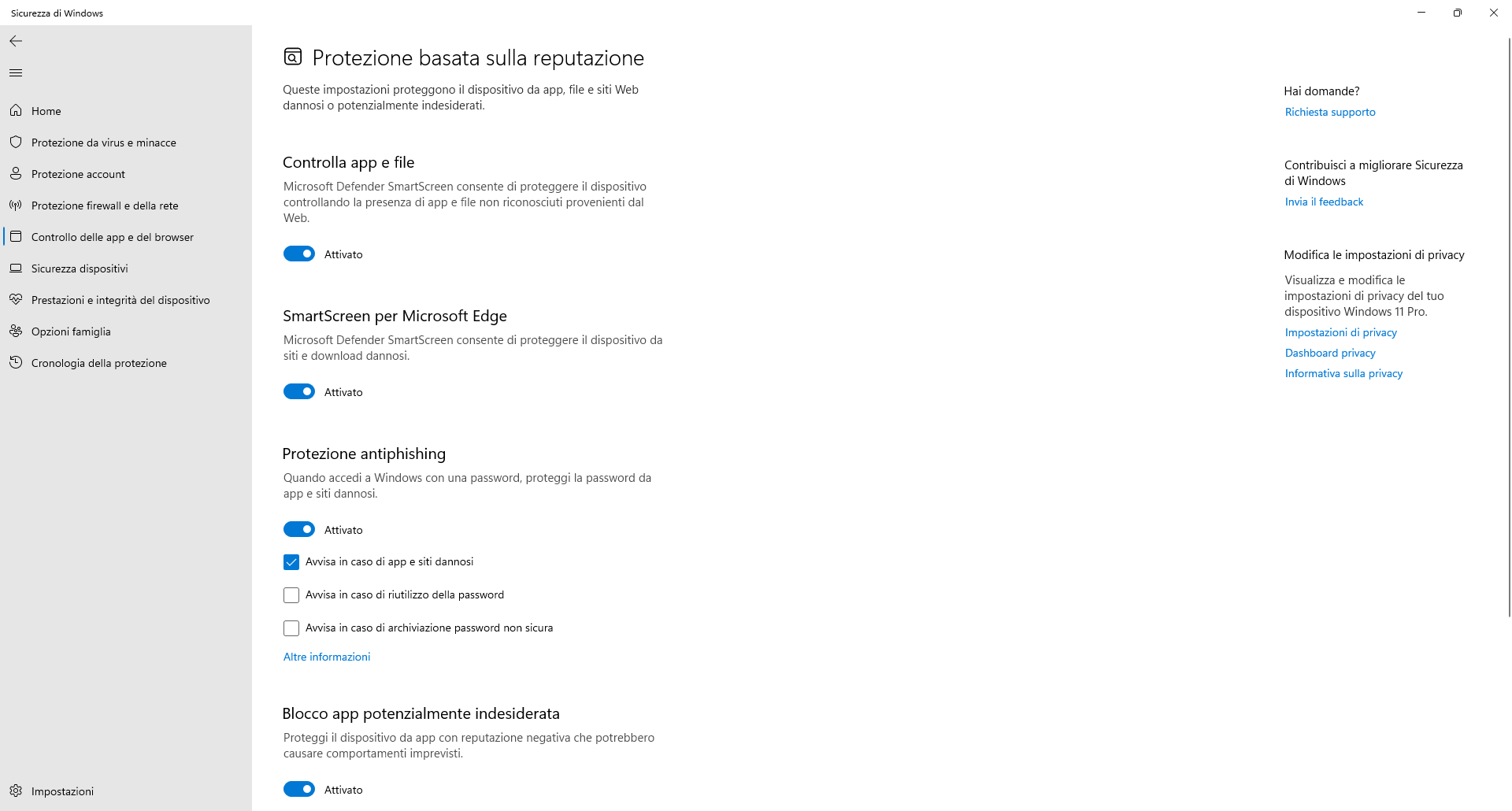 Il controllo intelligente delle app è una funzionalità pensata per le aziende di qualsiasi dimensione, disponibile sui nuovi dispositivi Windows 11 o su quelli che eseguono installazioni pulite del più recente feature update. In soldoni, questo strumento impedisce l’esecuzione di applicazioni, file con script e macro dannosi e non attendibili; inoltre, si occupa di prevedere il grado di sicurezza di un’applicazione in tempo reale, prima che questa venga eseguita sul dispositivo. Per essere abilitata, la funzionalità necessita di un’installazione pulita del sistema operativo.