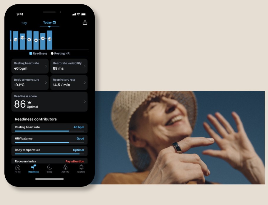 Legato a tali aspetti, compreso l’HRV e il sonno, è il parametro Readiness, una sorta di metro che dà un’idea sul proprio stato fisico prendendo in considerazione praticamente tutto ciò che lo smart ring è in grado di rilevare e monitorare.