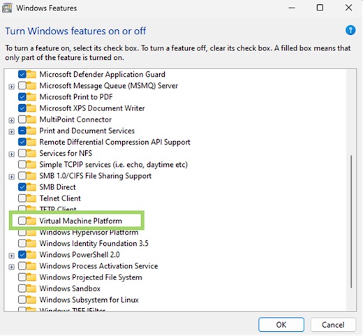 Per disabilitare VMP è necessario digitare “Caratteristiche di Windows” e selezionare “Attiva o disattiva le funzionalità di Windows” per aprire la nuova finestra delle funzionalità di sistema dove cercare la voce “Piattaforma macchina virtuale” e deselezionarla.