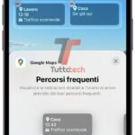 - Il primo widget, in formato 2×1, è chiamato “Percorsi frequenti” e consente agli utenti di visualizzare le indicazioni stradali e l’orario di arrivo previsto relativo ai percorsi frequenti dell’utente. Una volta aggiunto, questo può essere personalizzato, ad esempio, per dare informazioni su orario di arrivo e traffico per arrivare a casa o sul luogo di lavoro: nel caso in cui l’utente si trovi in una delle posizioni scelte, il widget lo segnalerà tramite la dicitura “Sei già qui”.