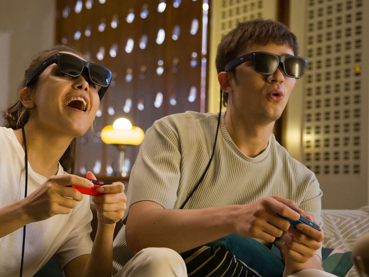 Comunque, parliamo di un paio di occhiali che aggiornano il modelli NXTWAR Air, offrendo una serie di funzioni interessanti che li rendono adatti a vari contesti. Come anticipato, offrono un campo di visione che il produttore afferma essere equivalente a uno schermo da 140″ posizionato a quattro metri di distanza da chi lo indossa. I display montati sono due micro OLED a 1080p che garantiscono una risoluzione di 47 pixel per grado e una copertura della gamma DCI-P3 superiore al 90%.