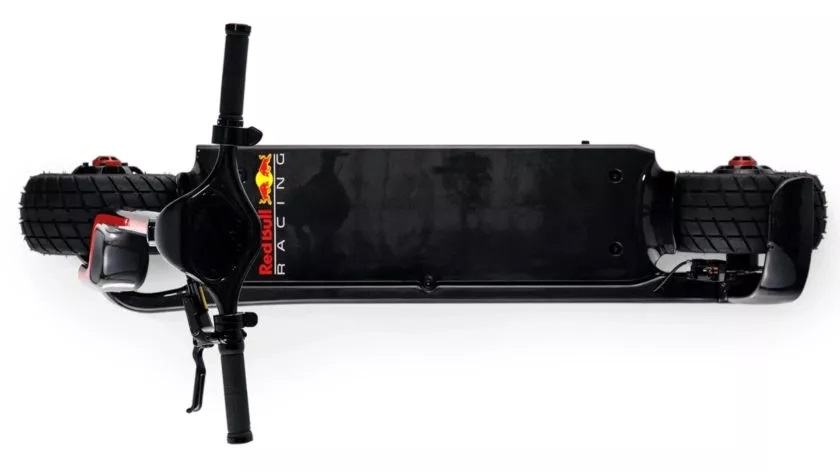 Red Bull ha anche dotato l’e-scooter di ruote di diametro maggiorato e pneumatici a mescola morbida per attutire meglio le asperità delle strade cittadine e i marciapiedi, inoltre il comfort è supportato anche dall’ampia pedana.