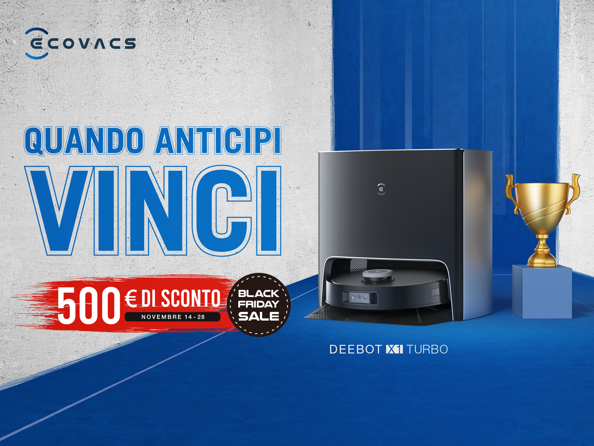 In occasione del Black Friday potete acquistare ECOVACS DEEBOT X1 TURBO su Amazon al prezzo di 799 euro, valido fino al 28 novembre, con uno sconto di ben 500 euro rispetto al prezzo di listino.