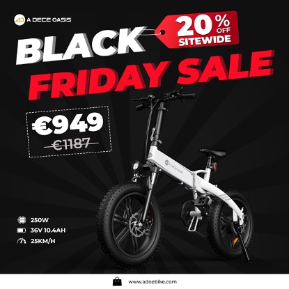 Anche se manca ancora una settimana esatta al Black Friday, che quest’anno è in programma per il 25 novembre, sono già numerosi i produttori che hanno lanciato le proprie offerte per il festival dello shopping. Tra questi troviamo anche ADO (A Dece Oasis) produttore di e-bike di cui vi abbiamo già parlato su queste pagine e sul canale YouTube di TuttoTech per alcune bici elettriche molto interessanti.