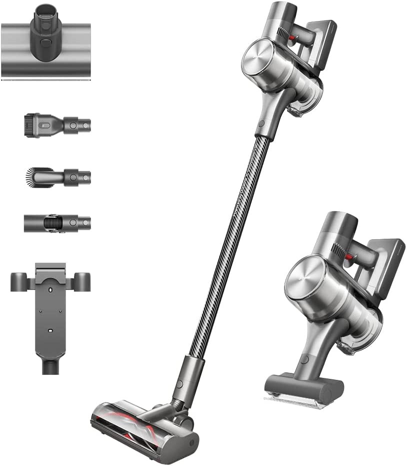 Non ci sono solo aspirapolvere robot nelle offerte Dreame ma anche aspirapolvere cordless come Dreame T30, con una dotazione di serie davvero ampia per pulire ogni tipo di superficie. Dispone di uno schermo LED che oltre alla carica residua mostra parecchie informazioni utili per la manutenzione del dispositivo. La potenza di aspirazione raggiunge i 190 AW e 27.000 Pa e la batteria rimovibile offre un’autonomia che può raggiungere i 90 minuti. Da segnalare il design della spazzola motorizzata principale, pensata per ridurre l’aggrovigliamento di peli e capelli.