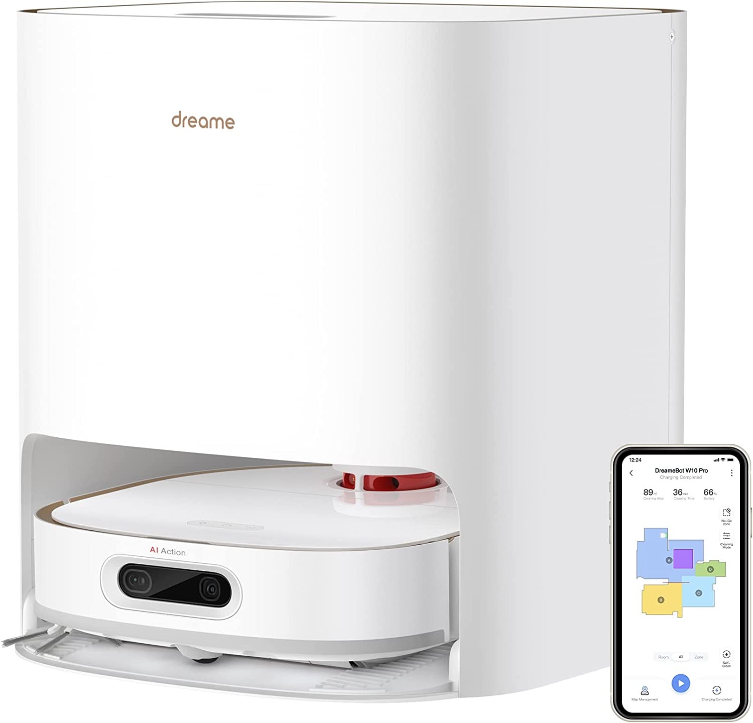 DreameBot W10 Pro è stato uno dei primi robot a proporre il lavaggio del pavimento con un doppio mocio rotante ed è ancora molto attuale. Nella base di ricarica integra due contenitori di grandi dimensioni, uno per l’acqua pulita e uno per quella sporca, derivante dal lavaggio dei due moci. Dispone di un sistema di rilevamento degli ostacoli imprevisti e di asciugatura e sterilizzazione alla fine di ogni lavaggio.