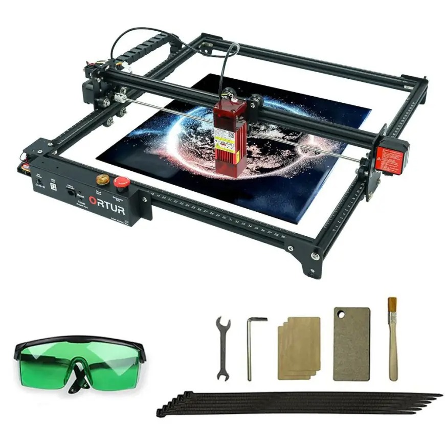 Più economica, ma altrettanto valida, è ORTUR Laser Master Pro 2, macchina da taglio e incisione laser con una superficie utile di 400 x 430 millimetri, con una velocità di incisione che raggiunge i 10.000 mm al minuto. Dispone di numerosi sistemi di sicurezza, come quello che riconosce eventuali fiamme e spegne la testina laser per evitare danni, e dispone di uno switch per lo spegnimento di emergenza.
