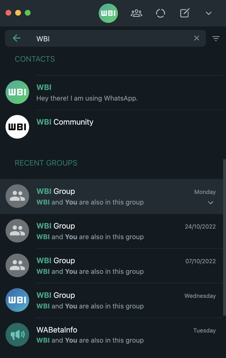 Di recente sui client Web e Desktop è stata introdotta la possibilità per alcuni utenti di visualizzare gli aggiornamenti di stato direttamente all’interno dell’elenco delle chat e con l’ultima versione disponibile (ossia la v. 2.2245.9) viene ora implementata la possibilità di cercare i propri gruppi recenti inserendo un nome di contatto.