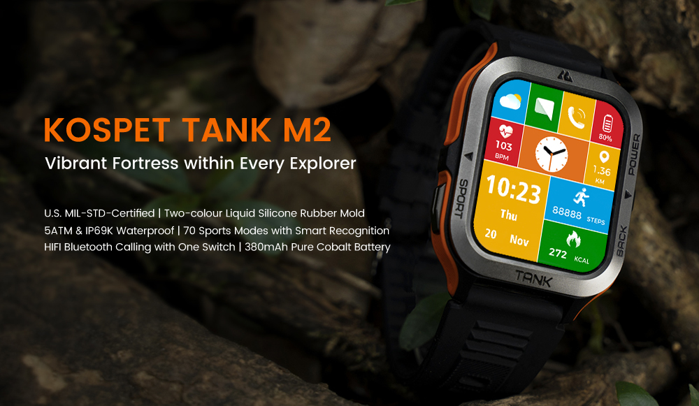 KOSPET, noto produttore di smartwatch ha lanciato oggi due nuovi dispositivi dedicati a chi pratica sport e attività all’aria aperta. Si tratta infatti di due modelli rugged, particolarmente resistenti a cadute, sporco e acqua, con tanto di certificazione militarne ad attestarne la bontà. Si chiamano KOSPET TANK T2 e KOSPET TANK M2 e andiamo immediatamente a scoprirne le caratteristiche tecniche.