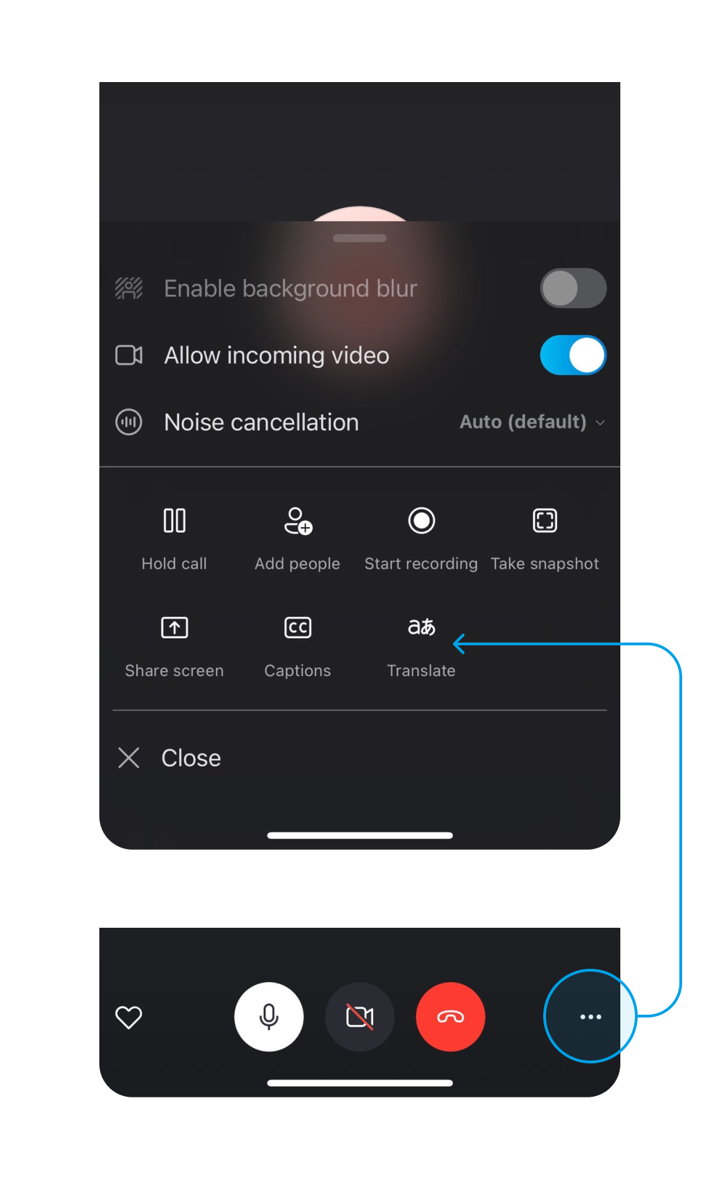 Le traduzioni sono disponibili per diverse lingue, tra cui inglese, spagnolo, francese, tedesco, cinese e altre ancora. Per attivarlo durante una chiamata, bisogna recarsi sui tre puntini che corrispondono al menu “Altro” e selezionare “Traduci”. Skype guiderà entrambi i partecipanti a iniziare a tradurre la conversazione con delle grafiche a schermo.