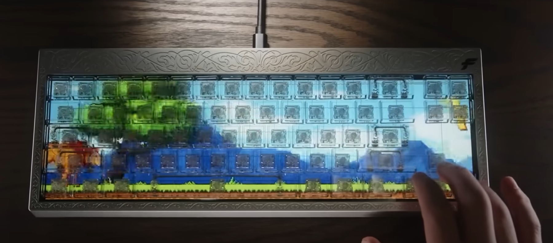 Non è chiaro con quante skin verrà lanciata questa bizzarra tastiera, ma nel video promozionale Finalmouse ha mostrato una varietà di possibilità, dai pesci che fuggono all’acqua che si increspa in corrispondenza dei tasti premuti, fino agli animali che pascolano e agli effetti animati 3D attivati dalla pressione dei tasti.