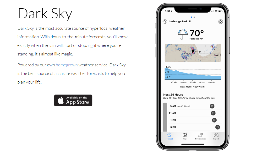 Diversi utenti dunque dovranno a breve rinunciare all’utilizzo di Dark Sky, applicazione dedicata al meteo che ha riscosso grande successo nel corso degli anni, a partire dal 31 dicembre 2022 infatti l’applicazione non è più disponibile per il download attraverso l’App Store, mentre gli utenti che hanno attualmente installata l’applicazione sui propri dispositivi, a partire dal 31 marzo 2023, non potranno più utilizzarne le funzioni e anche l’API associata al servizio verrà dismessa poco dopo.