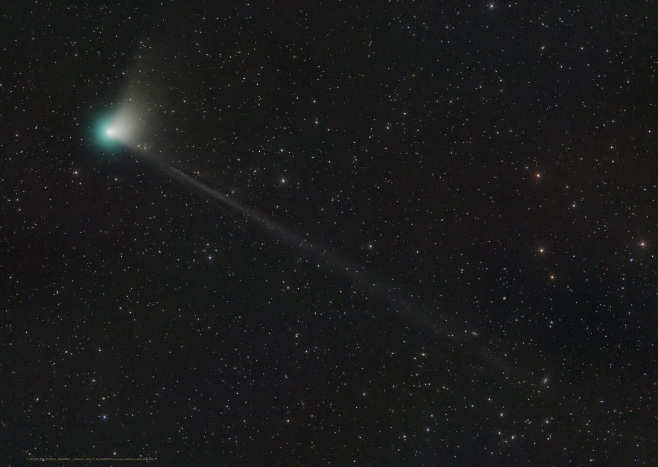 Attualmente la cometa è comunque visibile a tutti coloro che sono dotati di un telescopio, anche amatoriale, che stanno facendo a gara per realizzare il miglior scatto possibile del corpo celeste; quello che vedete qui sopra è uno scatto realizzato da Dan Bartlett e pubblicato dalla NASA, ritrae la chioma verde della cometa, la coda di ioni e la lunga coda di polveri a ventaglio.