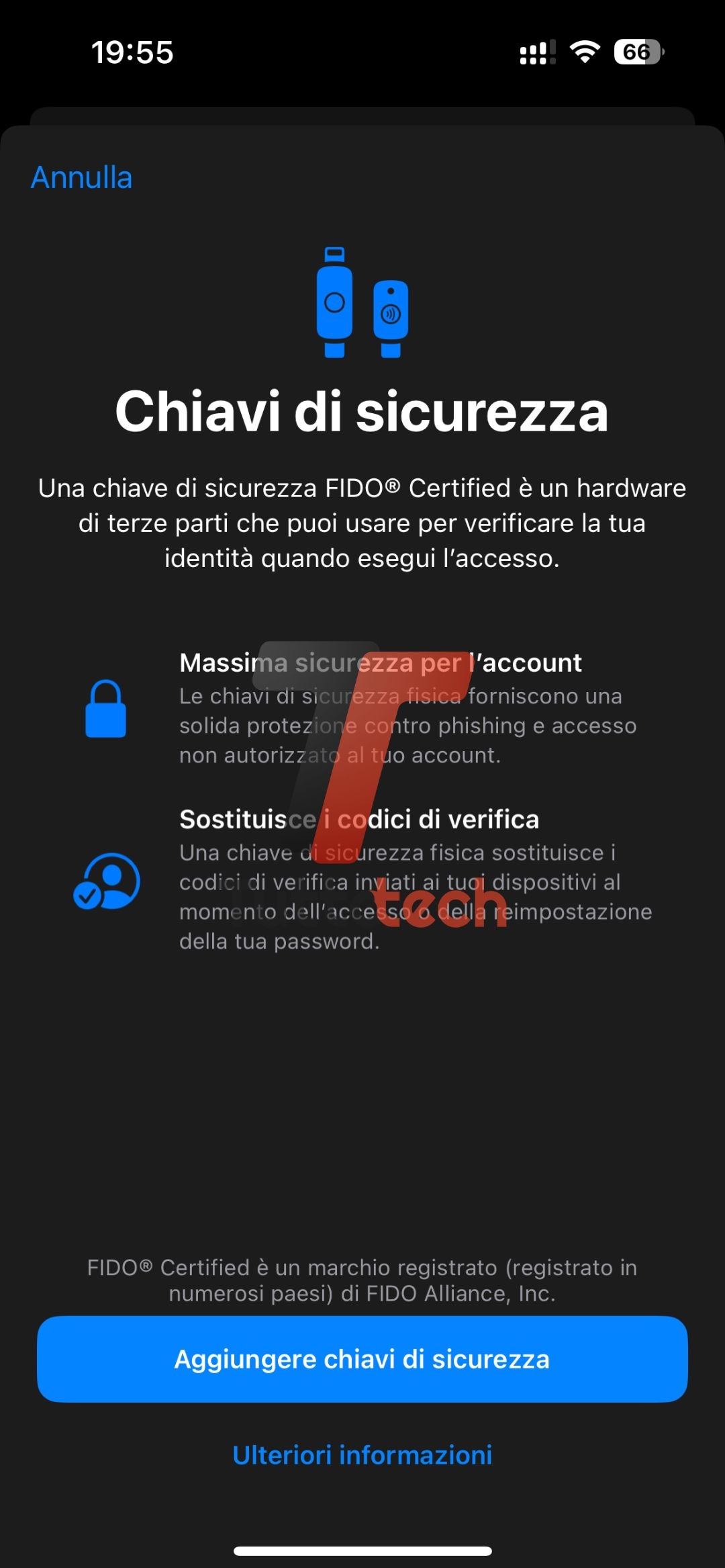 - Supporto ai token sicurezza fisici per l’ID Apple