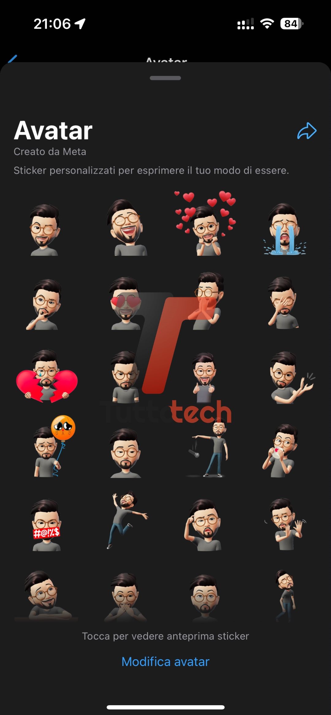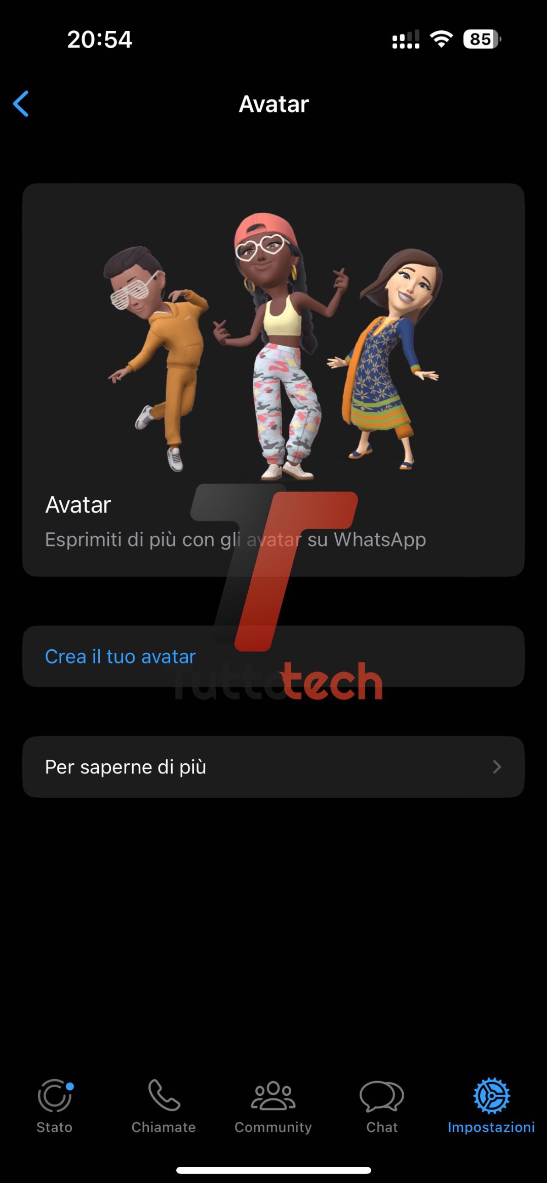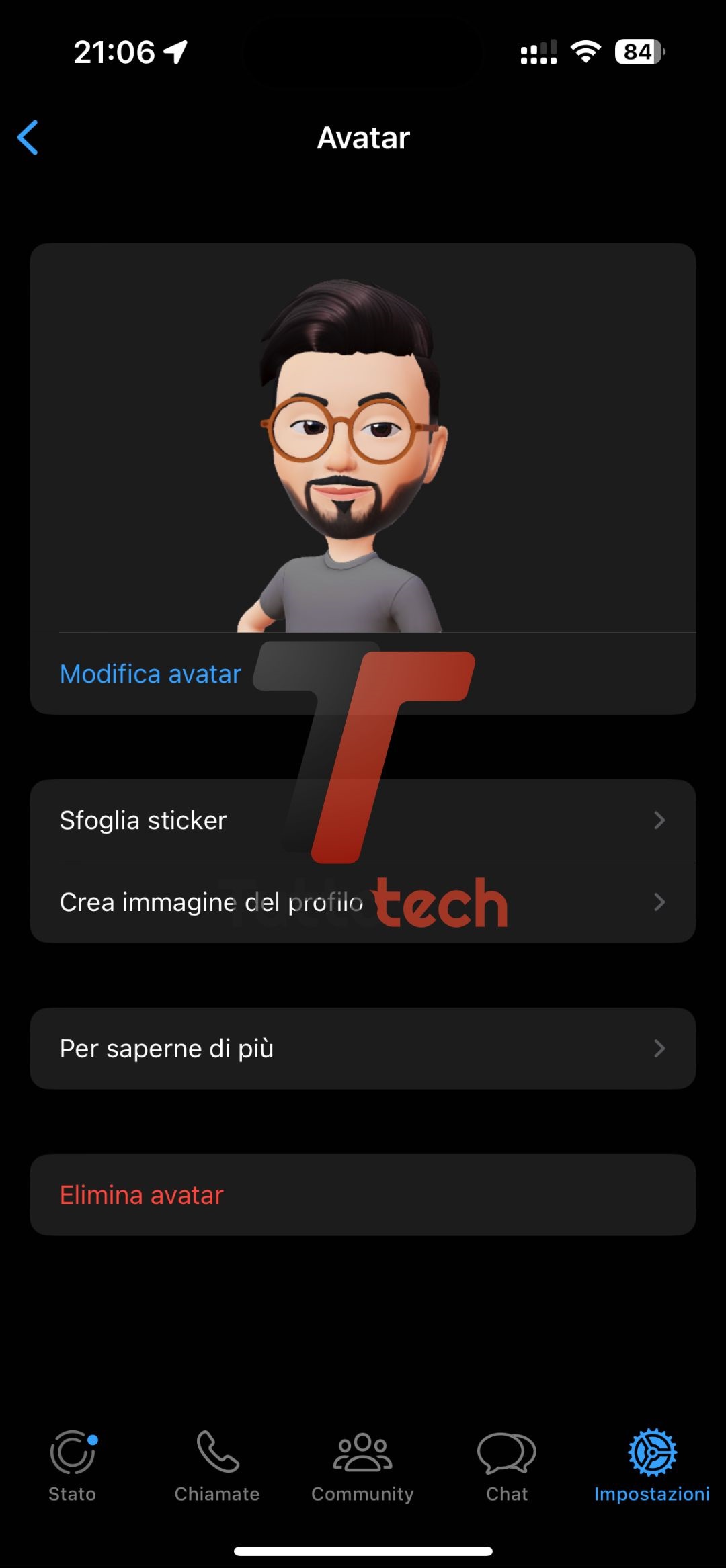 La sezione “Avatar” è stata implementata all’interno delle Impostazioni di WhatsApp per iOS (è la prima voce subito sotto i dettagli del profilo (come mostrato nella prima immagine della galleria condivisa poco sopra).