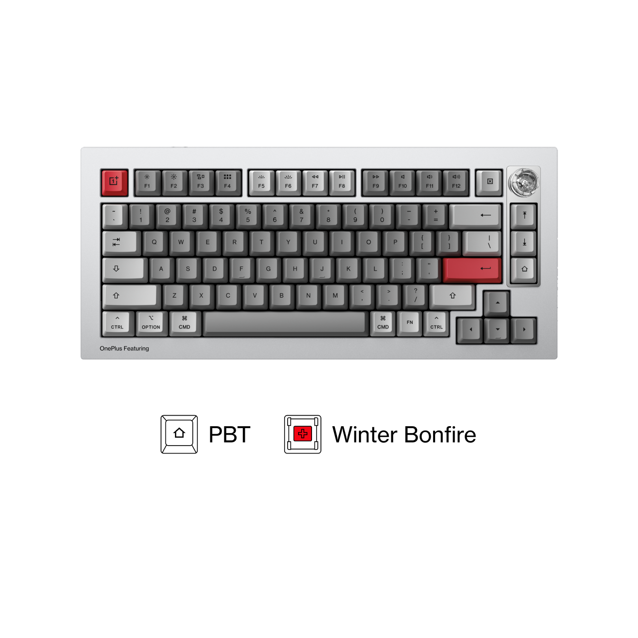 È realizzata con un corpo in alluminio, personalizzata con vari elementi caratteristici di OnePlus, come il tasto ESC che riporta il logo o l’interruttore di selezione che permette di cambiare modalità d’utilizzo. Mentre per quel che riguarda gli interruttori è possibile sceglierla con gli switch rossi Winter Bonfire o con i Summer Breeze blu.