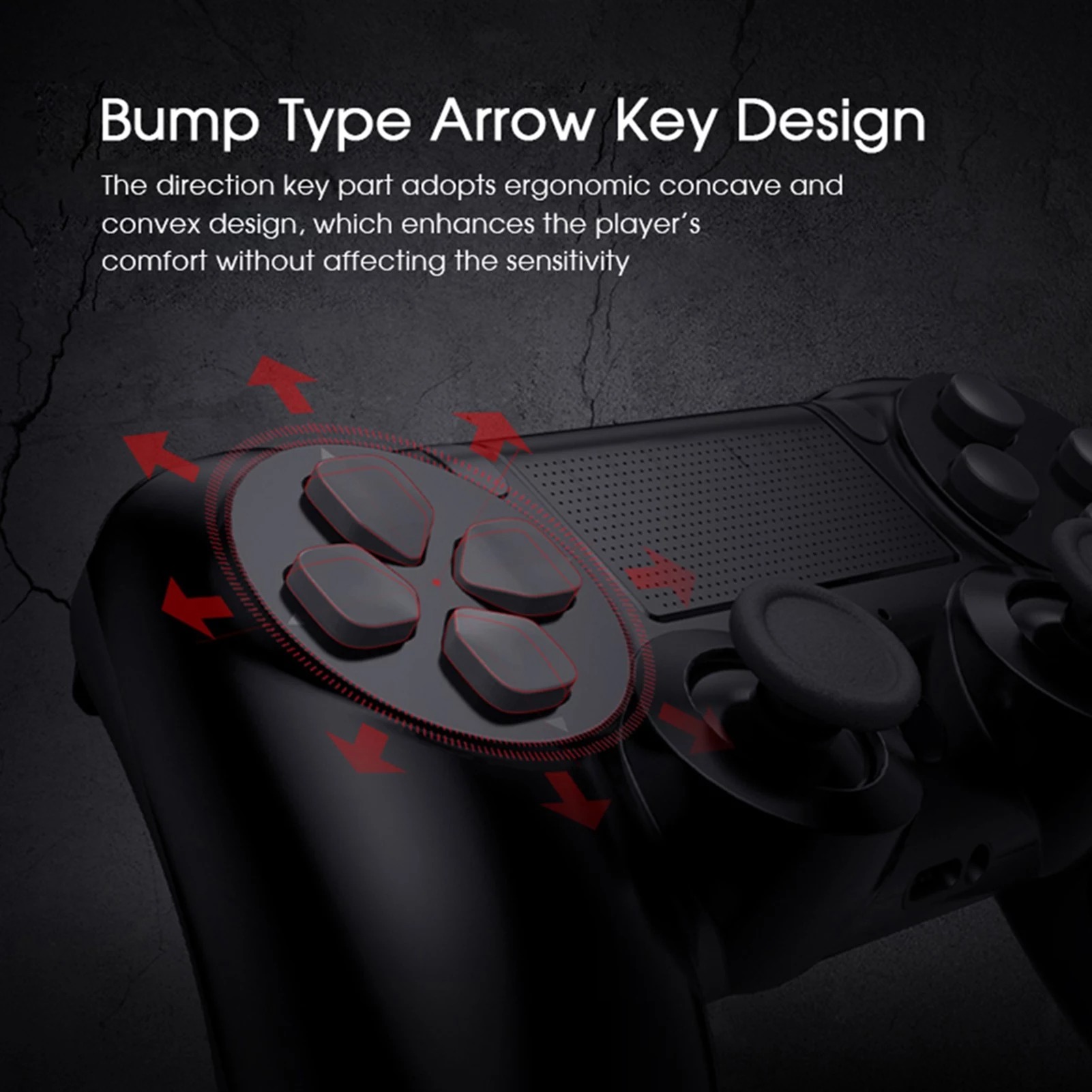 Il controller è decisamente completo nonostante il prezzo particolarmente contenuto e replica in tutto e per tutto quello ufficiale. Abbiano due stick analogici, il D-Pad, quattro tasti sul lato destro, un pannello touch, luci per dare un tocco di luce alle vostre partite, tasti dorsali e un connettore da 3,5 millimetri per collegare le vostre cuffie con filo preferite. Non manca uno speaker integrato per godere al meglio dei suoni di gioco, senza che sia necessario alzare al massimo il volume della TV o del monitor.