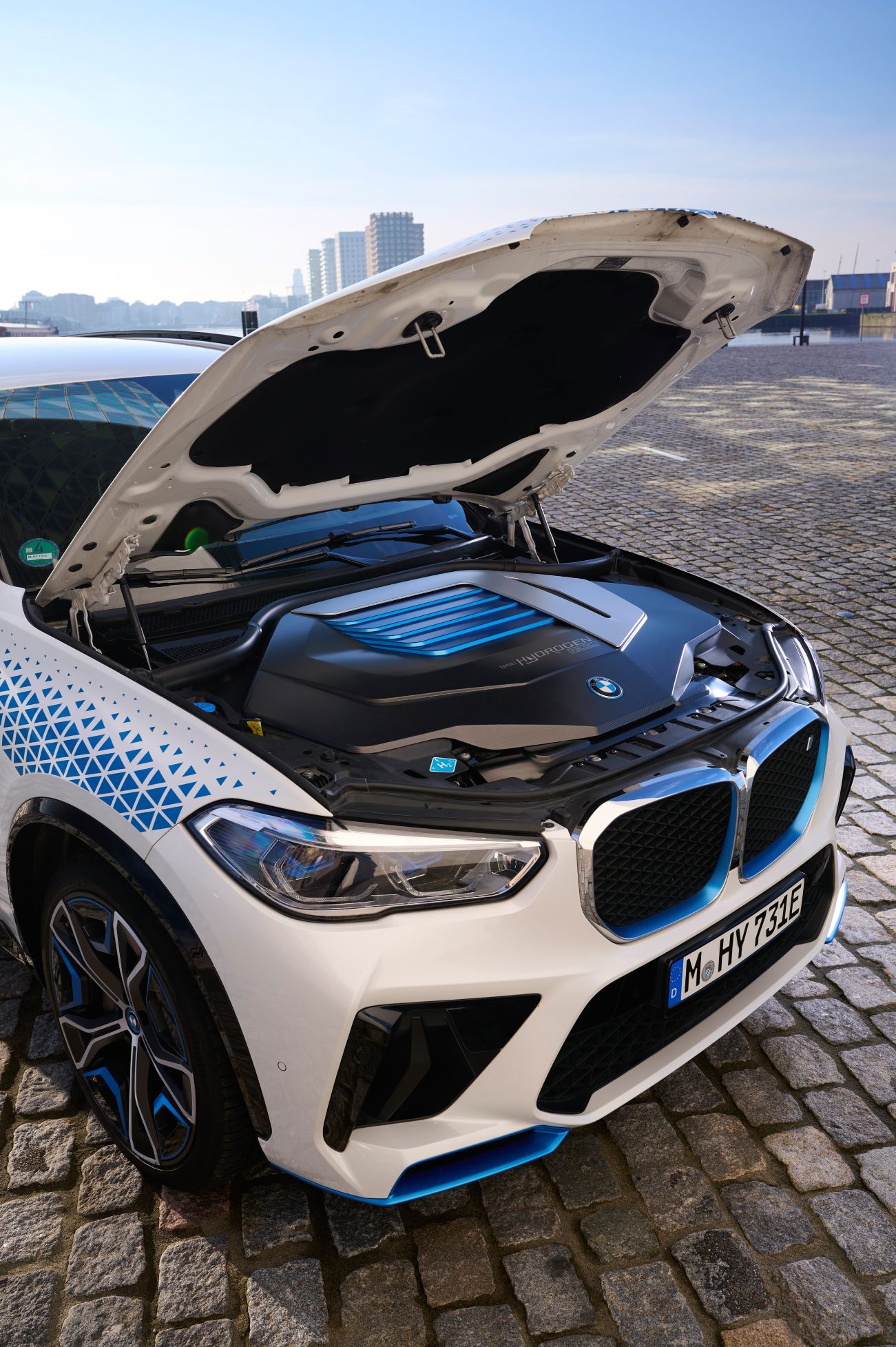 BMW iX5 Hydrogen è dotata di un powertrain composto da motore elettrico, trasmissione e centralina di controllo, elementi che compongono il sistema BMW eDrive di quinta generazione posto sull’asse posteriore, a cui si aggiunge la batteria per l’alimentazione con la tecnologia agli ioni di litio sviluppata appositamente per questo veicolo. Alla base ci sono le celle a combustibile (di Toyota, azienda con cui BMW collabora dal 2013 in questo settore) che funzionano tramite delle reazioni chimiche fra l’idrogeno gassoso (carburante) e l’ossigeno dell’aria, semplificando molto.