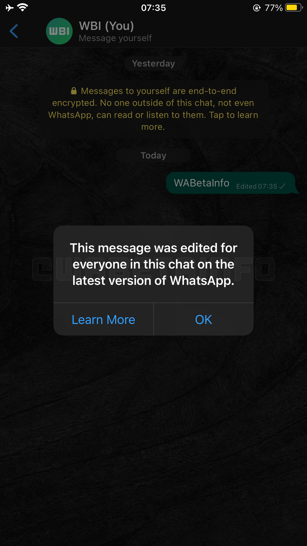 Alla fine dello scorso anno è emerso che il team di WhatsApp è al lavoro sulla possibilità di modificare i messaggi e tale funzionalità è ancora in fase di sviluppo e con l’ultima release beta è stato aggiunto un apposito avviso.
