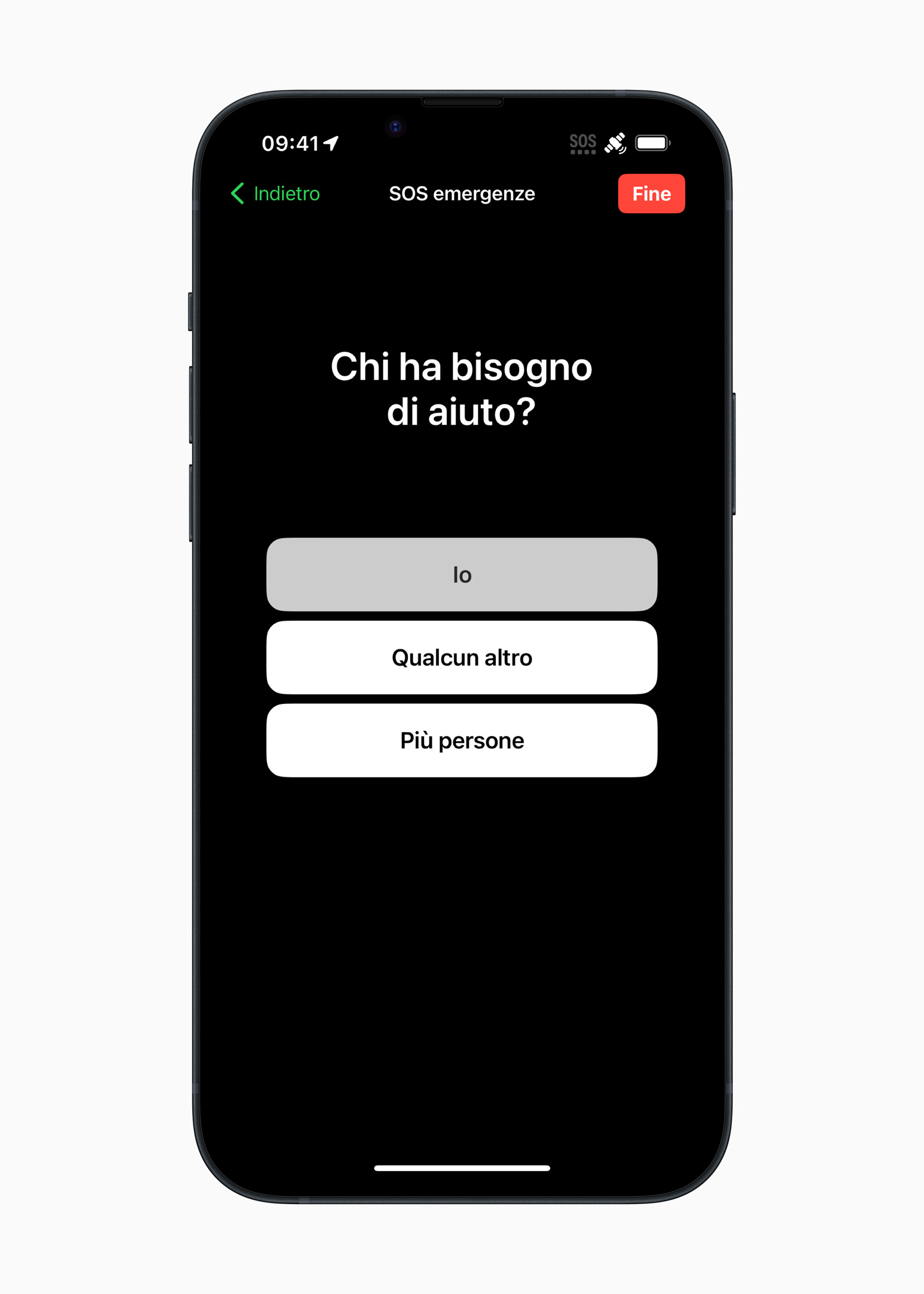 Accedendo alla funzionalità, appare una splash screen che informa dei requisiti per potere sfruttare la funzionalità (essere all’aperto e avere un po’ di pazienza in sostanza). Subito dopo, l’iPhone somministrerà all’utente un questionario che aiuta ad indirizzare al meglio i soccorsi: