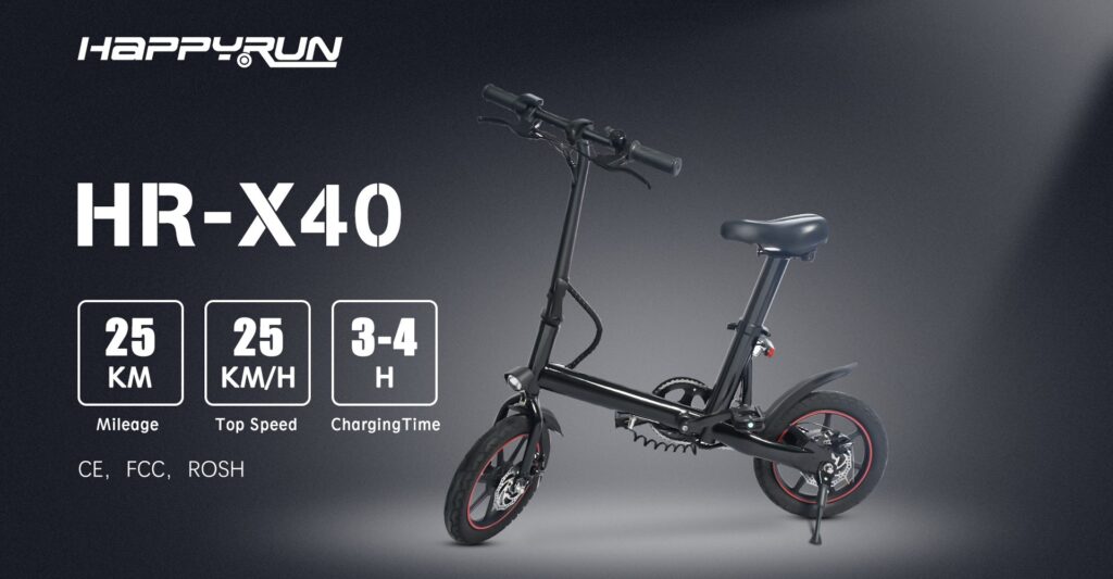 La comodità di Happyrun XR-X40 sta nel fatto che si piega come un monopattino, con il manubrio che si reclina verso la sella. Bastano quindi pochi secondi per ripiegarlo, abbassare la sella e avere un modo comodo per portarla in mano, senza rischiare che si apra. Il peso di poco meno di 20 Kg non rende le operazioni difficili, anche se dovete caricarla nel bagagliaio dell’auto, visto che misura appena 112 centimetri di lunghezza.