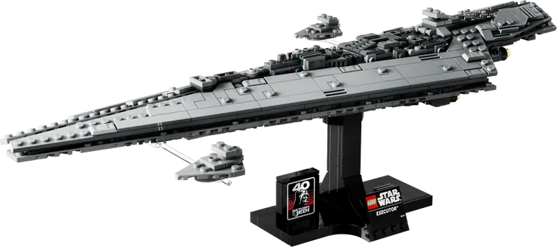 Il modello è accompagnato da due “piccoli” Star Destroyer, è posizionato su un piedistallo e oltre alla targhetta ha anche il mattoncino celebrativo dell’anniversario del film. Sarà in vendita a partire dal primo maggio sul sito LEGO.com a soli 69,99 euro.