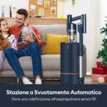 Il pezzo forte di Ultenic FS1 è però la sua stazione di svuotamento automatico, che si attiva appoggiando l’aspirapolvere alla base di ricarica. Lo sporco presente nel contenitore da 550 ml viene aspirata in un sacchetto da 3 litri che riduce la necessità di svuotarlo frequentemente.