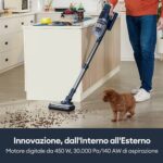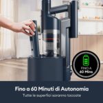 Il display consente di avere sempre tutte le informazioni sotto controllo e di modificare i parametri di pulizia. La batteria è sostituibile e nella base di ricarica è presente un apposito slot così da caricare due batterie contemporaneamente e avere una maggiore autonomia. Sulla spazzola motorizzata sono inoltre presenti i LED che consentono di illuminare al meglio anche le aree più buie per individuar lo sporco e raccoglierlo senza fatica.