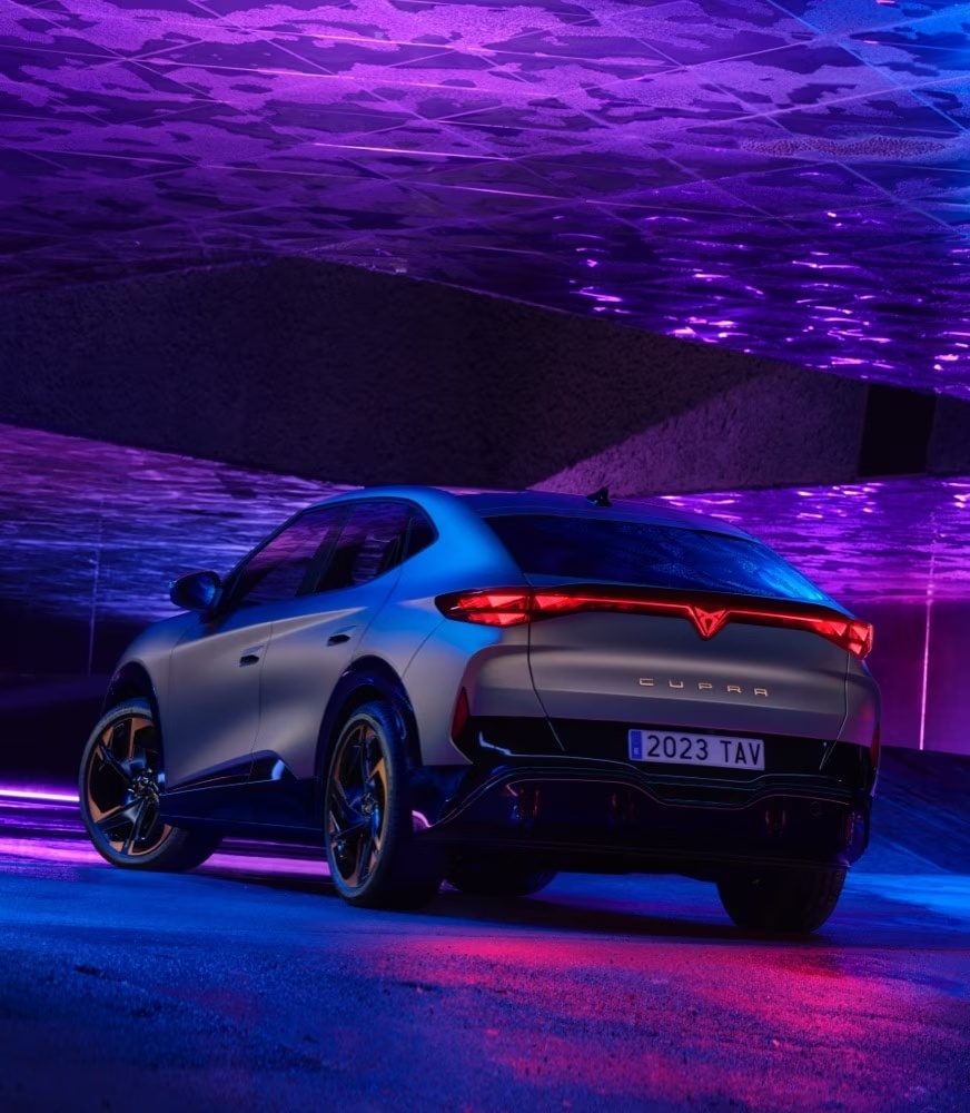 Ma è probabilmente la coda il lato più interessante di Tavascan, dove i gruppi ottici sono uniti nel logo Cupra, illuminato anche nel frontale e che, assieme al combinarsi delle diverse linee e alle soluzioni in stile “estrattore” la rendono molto particolare e grintosa.