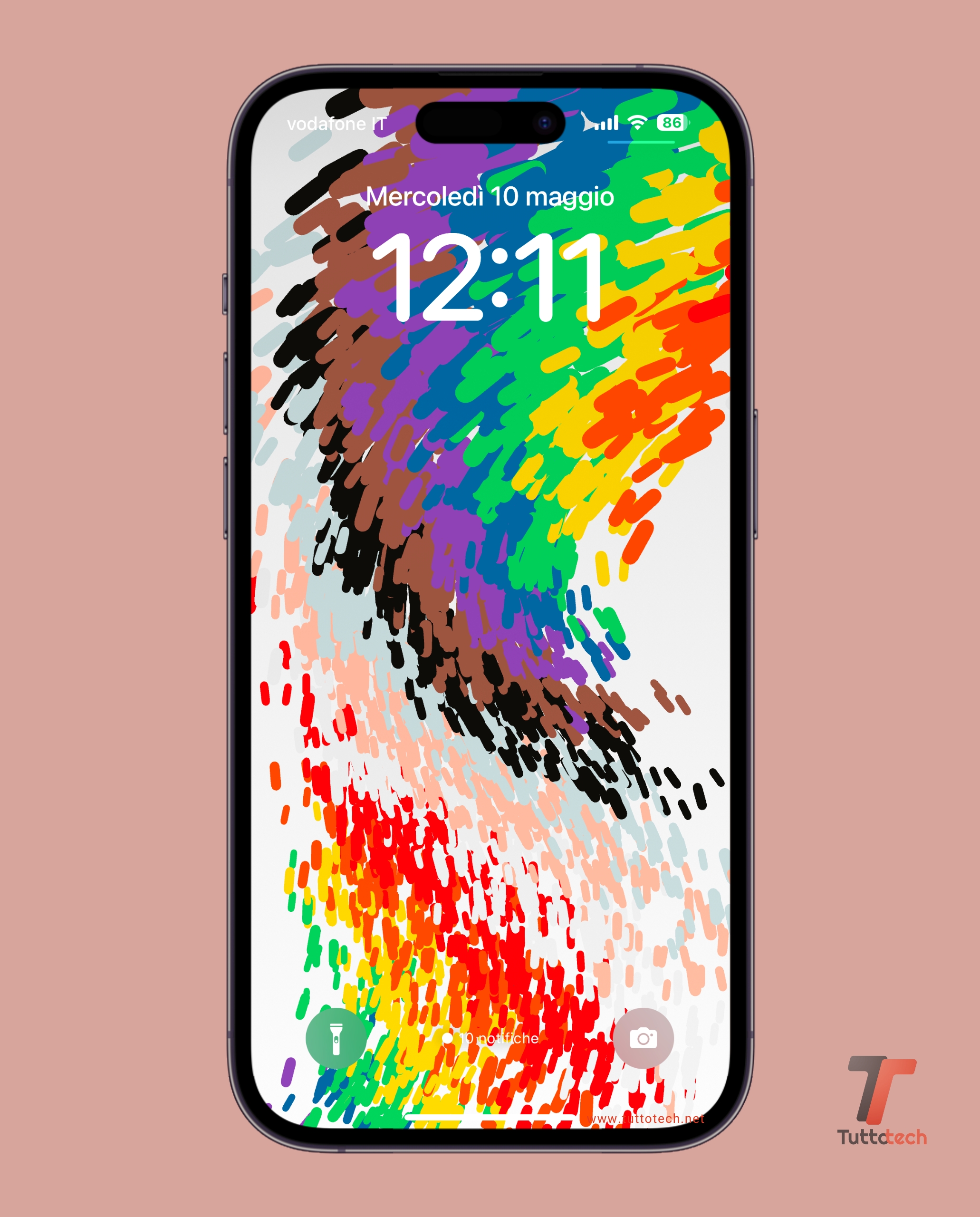 Ve l’abbiamo raccontato nella serata di ieri e, all’interno delle build rilasciate come Release Candidate di iOS 16.5 e watchOS 9.5, Apple ha inserito, rispettivamente, il nuovo sfondo e il nuovo quadrante Pride Edition. Nella seguente immagine, potete vedere il nuovo sfondo applicato alla schermata di blocco di un iPhone 14 Pro. Nel momento in cui un utente sblocca lo smartphone, le “macchie di colore” presenti sullo sfondo eseguiranno una specie di animazione a scorrimento.