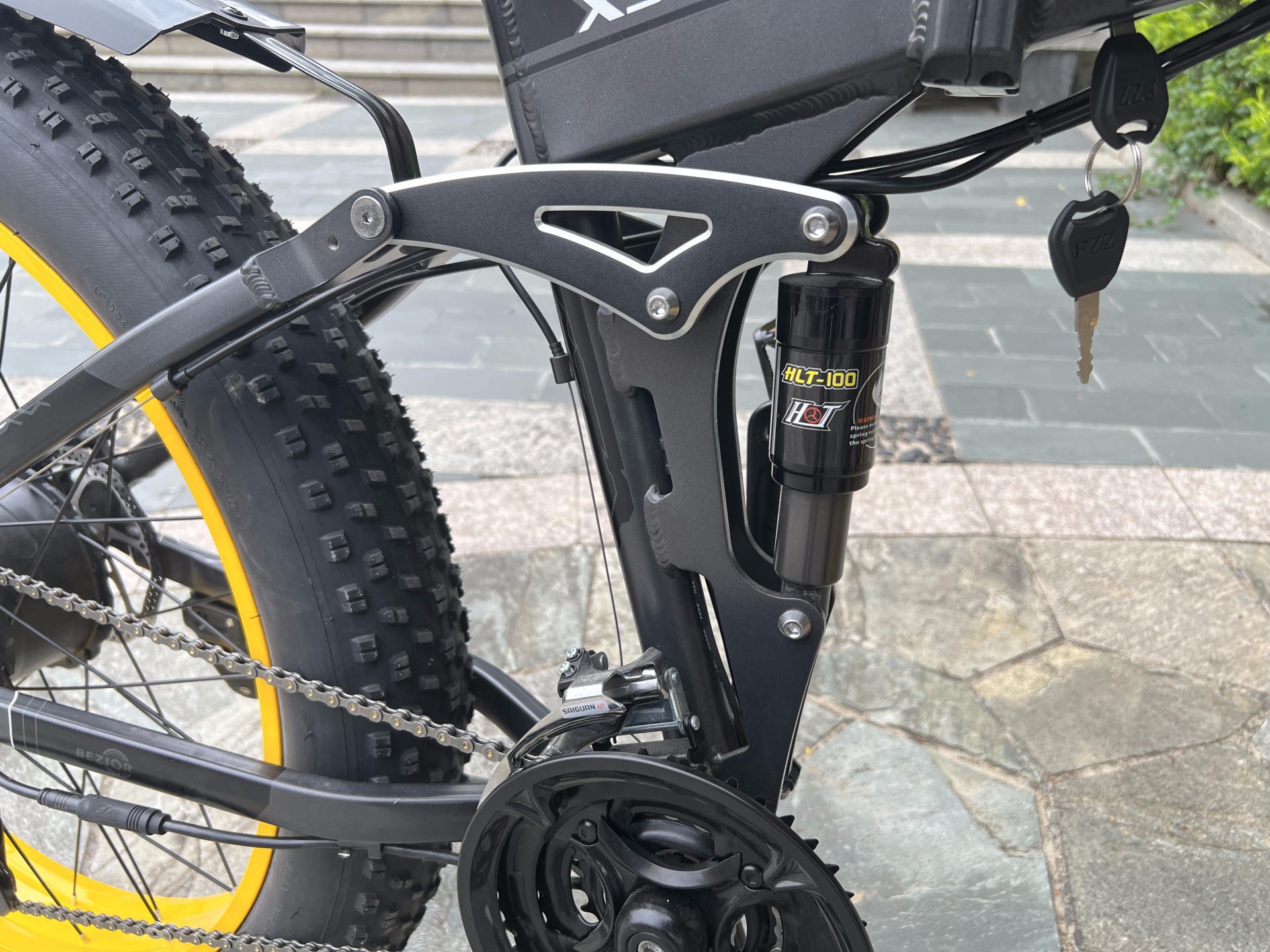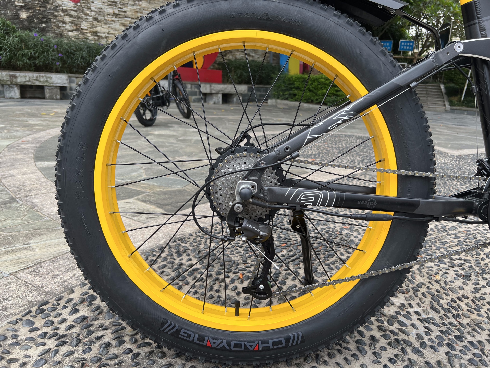 A differenza della maggior parte delle e-bike, che montano un cambio con singola corona anteriore, Bezior ha scelto di utilizzare una tripla all’anteriore, con un pacco pignoni composto da 9 elementi al posteriore. In questo modo sono disponibili 27 rapporti, rendendo ancora più semplice trovare quello più adatto a ogni situazione, dalla discesa alla salita più dura.