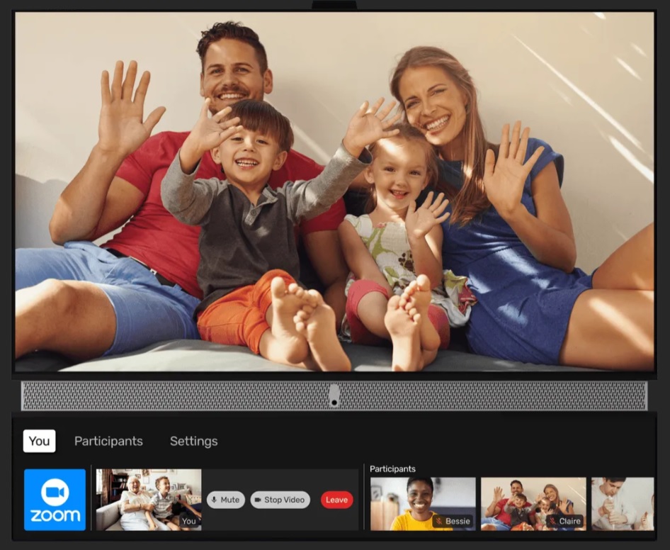 In più è presente una telecamera con otturatore per la privacy e microfono che può tracciare il movimento all’interno dei programmi avanzati gratuiti di fitness forniti con la TV e consentire di utilizzare la piattaforma Zoom inclusa nella TV di Telly che integra anche un assistente vocale basato sull’intelligenza artificiale ed esegue il sistema operativo TellyOS. La società sta anche per distribuire 40 giochi diversi e la possibilità di riprodurre musica da servizi di streaming popolari.