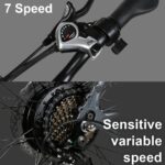 Non solo strade cittadine però, ma anche strade sterrate, vista la presenza di una forcella anteriore ammortizzata e di una sospensione anche al posteriore, per offrire il massimo comfort di guida su ogni terreno, soprattutto quelli particolarmente sconnessi. Anche in questo caso abbiamo una singola corona anteriore e un pacco pignoni con 7 elementi al posteriore.