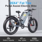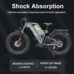 La propensione all’utilizzo su sterrato e salite è confermata dalla presenza di ruote da 26 x 4 pollici, di tipo fat, con pneumatici anti slittamento e anti vibrazione, per migliorare il comfort di guida. Va inoltre detto che sono presenti una forcella anteriore ammortizzata ma anche una sospensione posteriore, che garantisce un ottimo assorbimento dei salti e delle asperità stradali, anche le peggiori. Entrambe le sospensioni utilizzano un sistema a olio per la massima responsività.