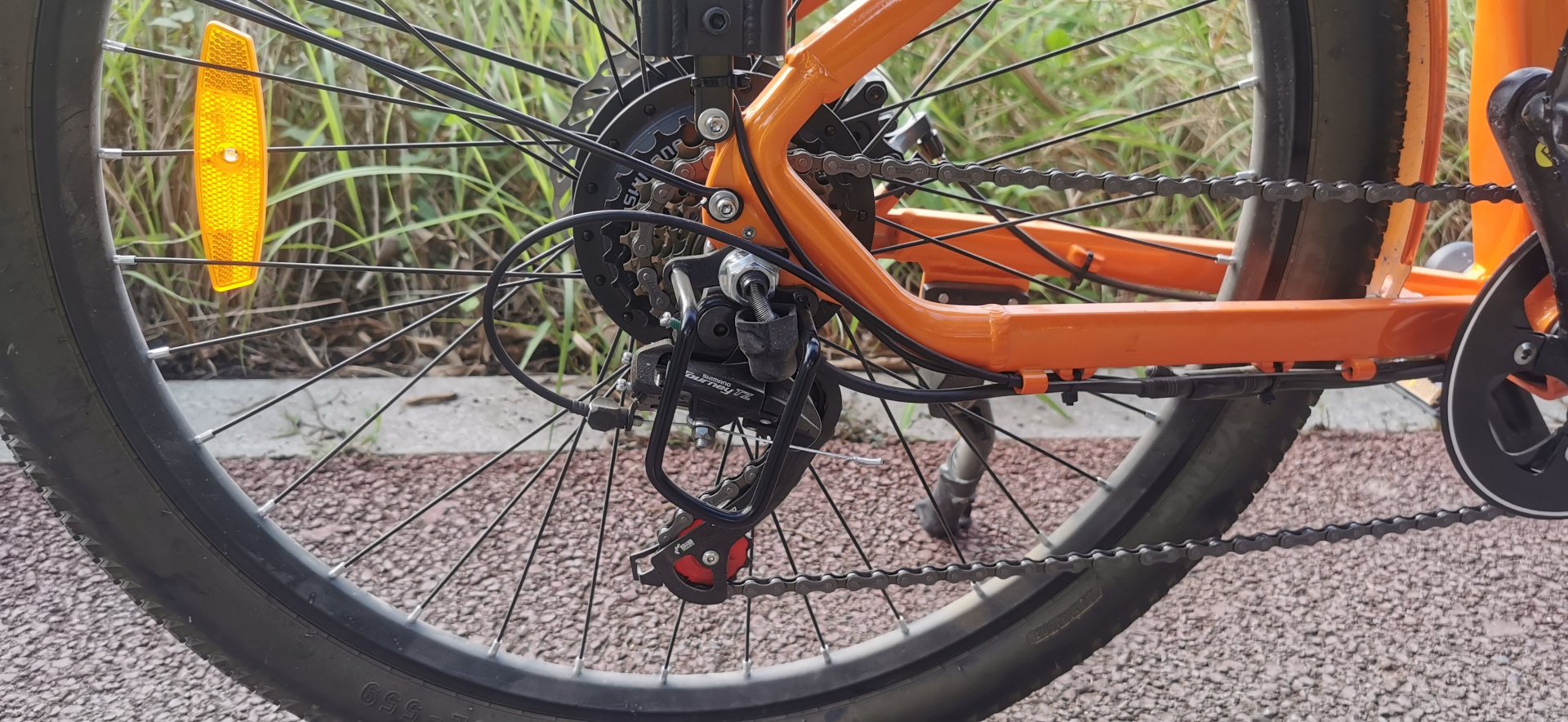 I freni a disco meccanici, presenti su entrambe le ruote, permettono di fermarsi in tutta sicurezza in spazi ridotti, con un raffreddamento efficiente e l’immediata interruzione dell’assistenza alla loro attivazione. Il cambio Shimano a 7 rapporti abbinato alla singola corona anteriore, permette di trovare sempre il giusto rapporto, in salita come in discesa, per ridurre al minimo lo sforzo.